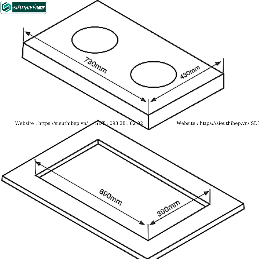 - Kích thước mặt bếp : 730 x 430 x 80mm