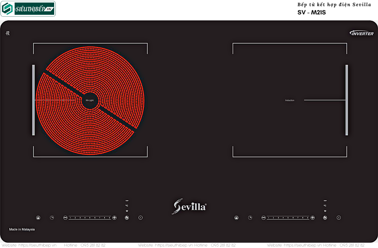 ✅ Chức năng lựa chọn 2 vòng bếp điện phù hợp với từng kích thước nồi