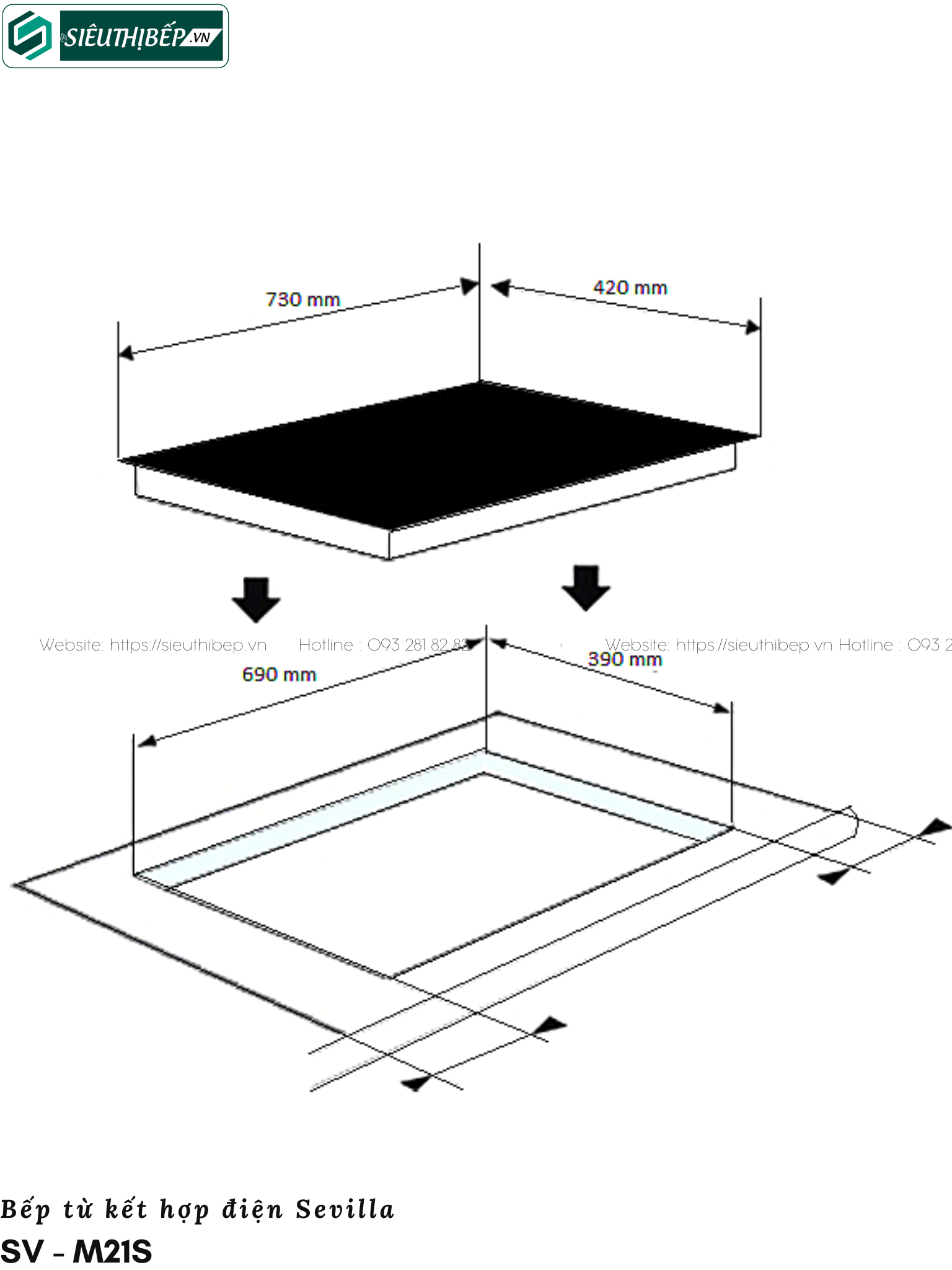 ✅ Kích thước khoét đá: 690 x 390 mm