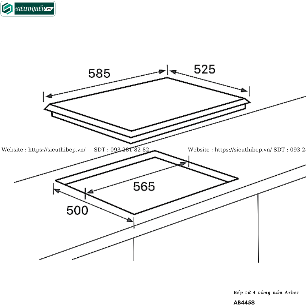 - Kích thước khoét lỗ: 565 x 500 mm