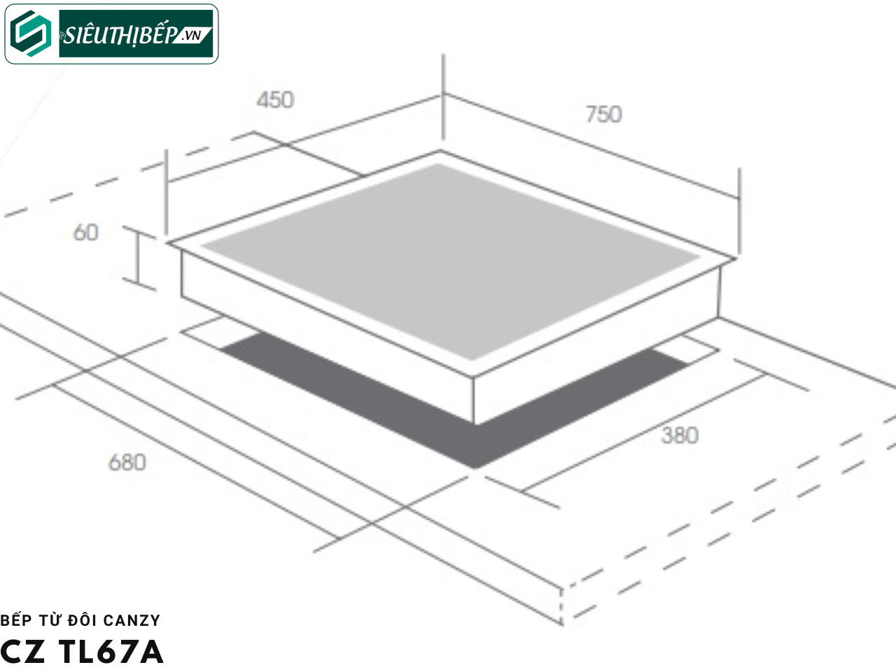| Kích thước | • Kích thước bề mặt: 750x450mm • Kích thước khoét đá: 680x380mm |