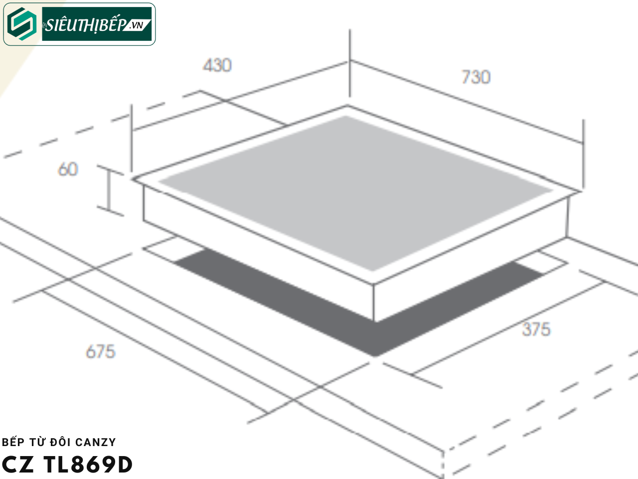 Kiểu dáng | Bếp từ đôi lắp đặt âm, hình chữ nhật |