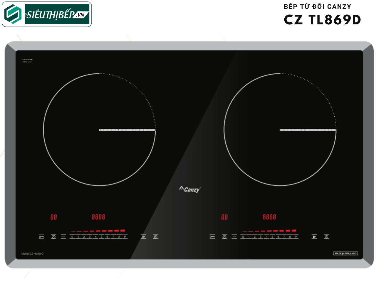 • Bếp đôi: 2 vùng từ sử dụng mặt kính Vitro Ceramic vát 4 cạnh bo góc sang trọng