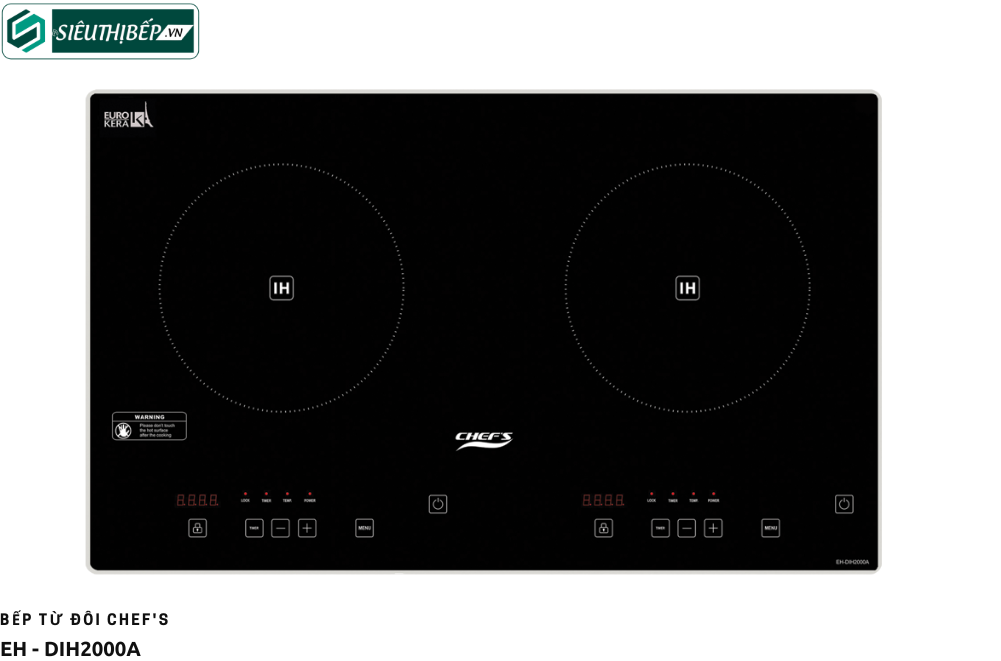 EH-DIH2000A lắp ráp tại Việt Nam sử dụng mặt kính Euro Kera và mâm từ E.G.O - những thương hiệu mặt kính và mâm từ nổi tiếng sử dụng cho bếp điện từ.
