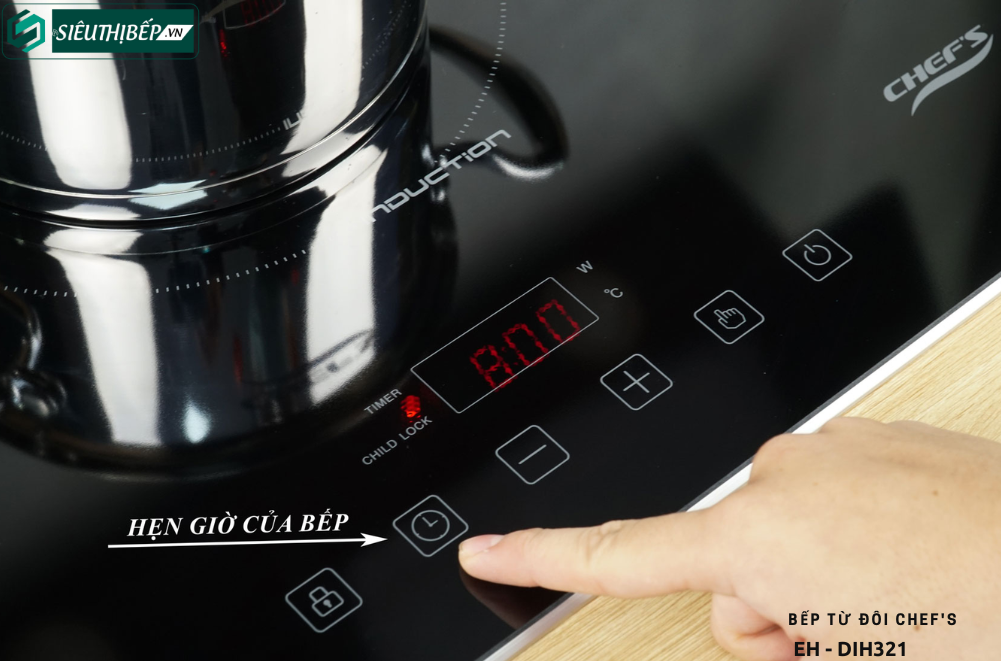 Hẹn giờ: DIH321 có thể hẹn giờ độc lập cho từng vùng nấu, thời gian hẹn đến 8.00 giờ. Người dùng có thể linh hoạt hẹn giờ nấu cho từng món ăn mà không lo bị quên dẫn đến thức ăn bị quá nhừ hay cháy, khét.