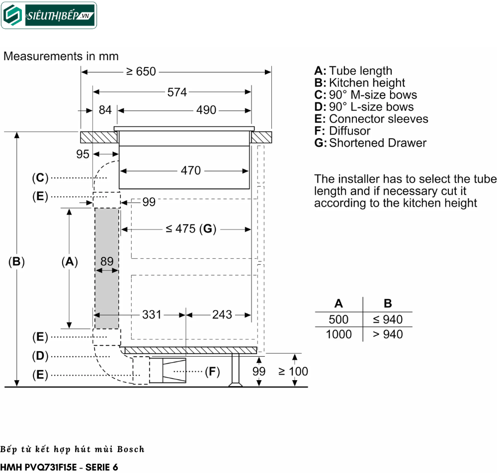 | Bề mặt bếp | Gốm thủy tinh Schott, vát cạnh trước. |