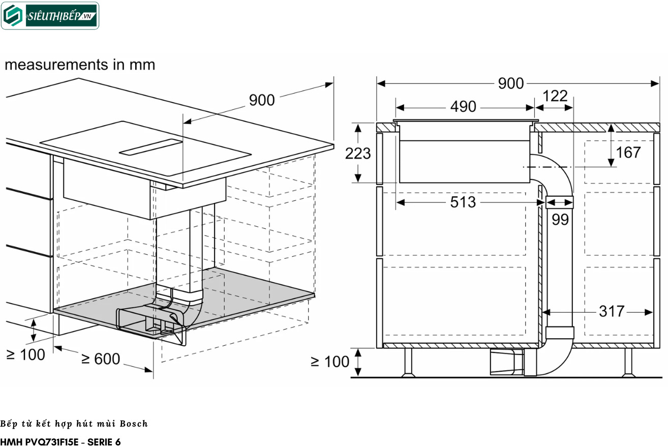 Bếp từ kết hợp hút mùi Bosch HMH.PVQ731F15E - Serie 6
