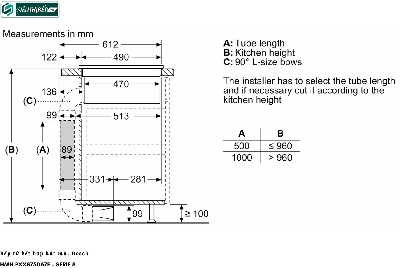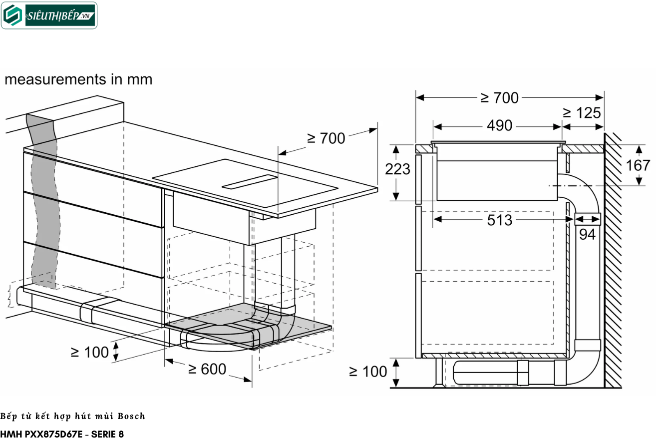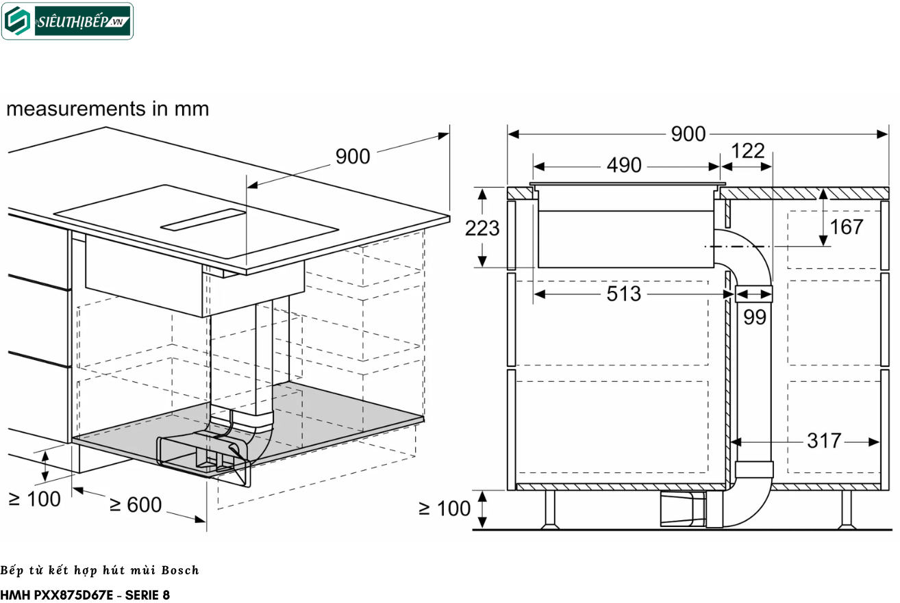 Bếp từ kết hợp hút mùi Bosch HMH.PXX875D67E - Serie 8