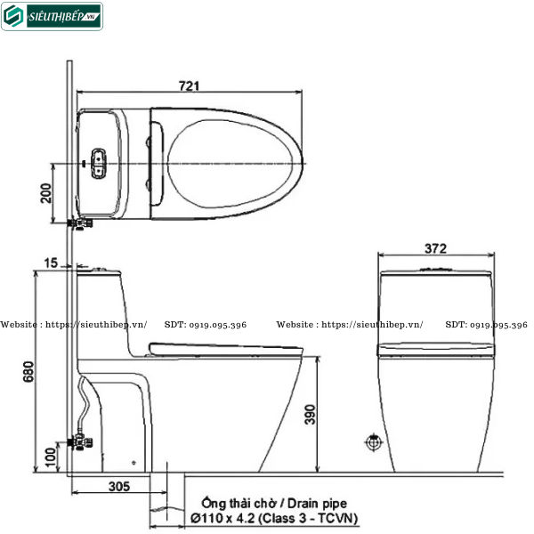 - Tâm thoát bồn cầu: 300mm (+-5)