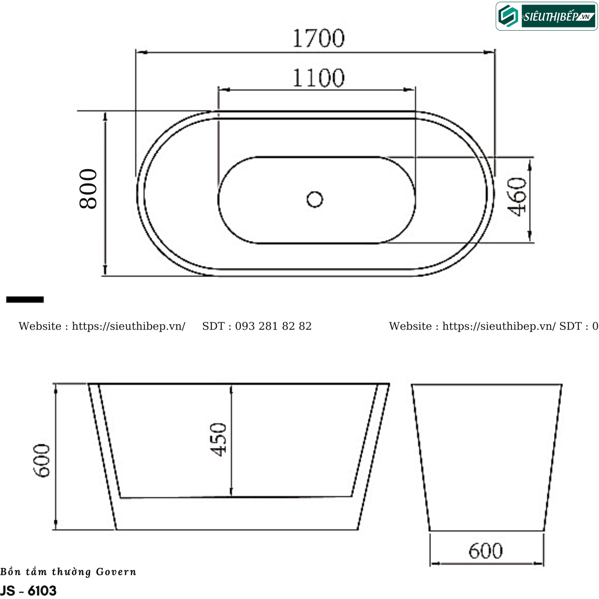 Bồn tắm Govern JS - 6103 (Bồn tắm nghệ thuật không bao gồm vòi sen)