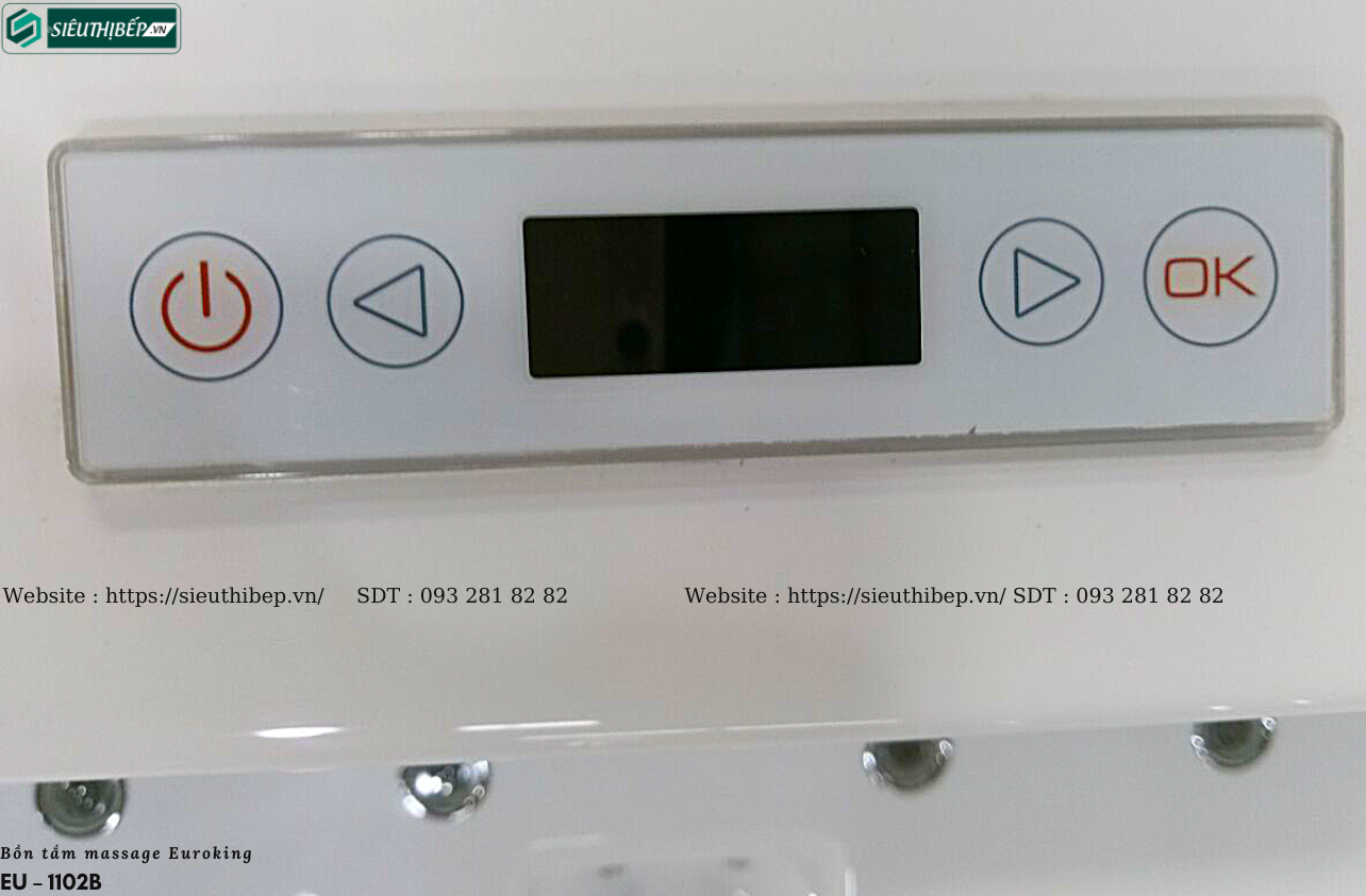 Bảng điều khiển LCD của Bồn tắm massage EU-1102B được đặt ngay trên thành bồn tắm. Chúng ta sẽ khởi động bồn tắm rất dễ dàng với các nút ấn từ bảng điều khiển này.
