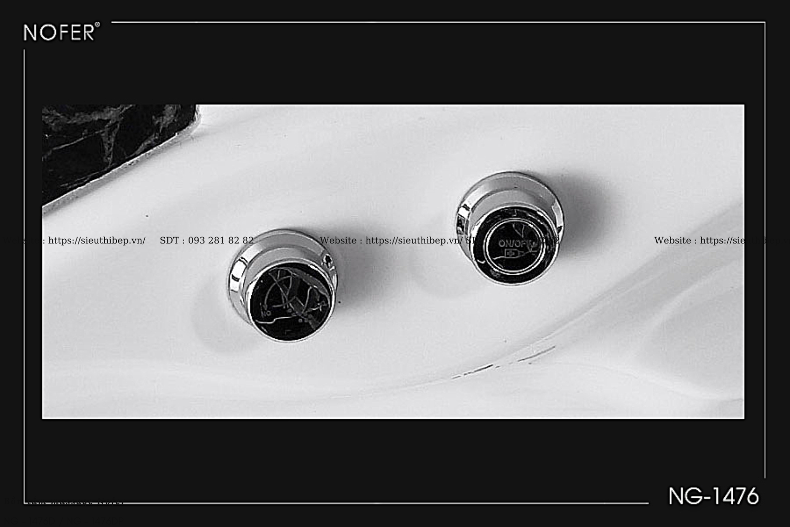 Trên thành của Bồn tắm Massage NG-1476D/ 1476DP còn được thiết kế, lắp đặt nút khởi động ON/ OFF, bộ phận điều khiển ứng dụng công nghệ số hiện đại, điều chỉnh các mắt sục trong bồn tắm massage.