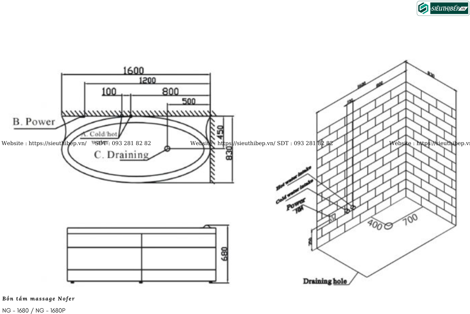 Kích thước của bồn theo chiều dài*rộng*cao lần lượt sẽ là 1600*830*680 mm sẽ vừa vặn hơn cho một người sử dụng thoải mái cũng như không chiếm quá nhiều diện tích trong phòng tắm, nhỏ gọn và tinh tế.