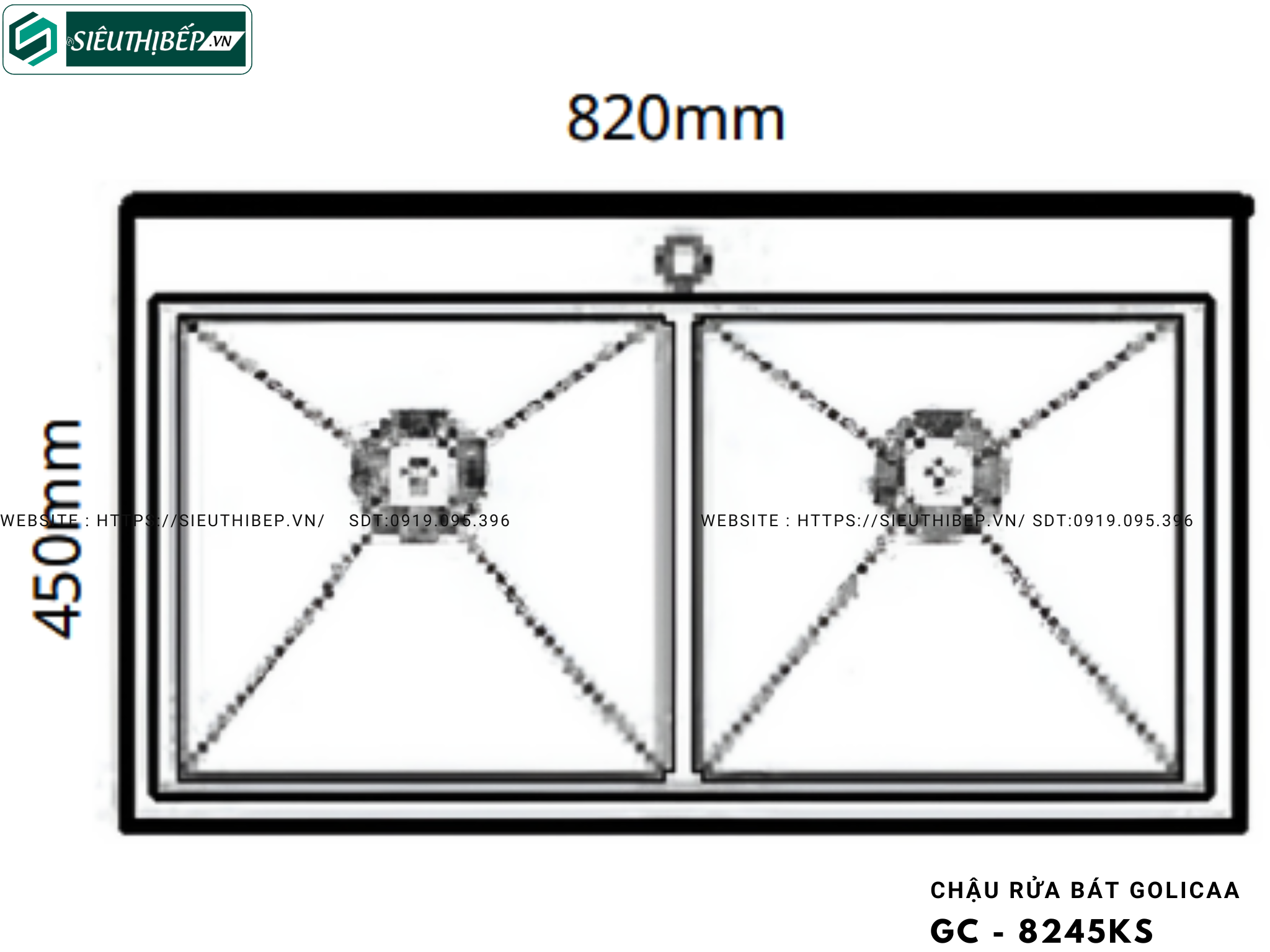 Chậu rửa bát Golicaa GC - 8245KS (Inox 304 - 2 Hộc đều)