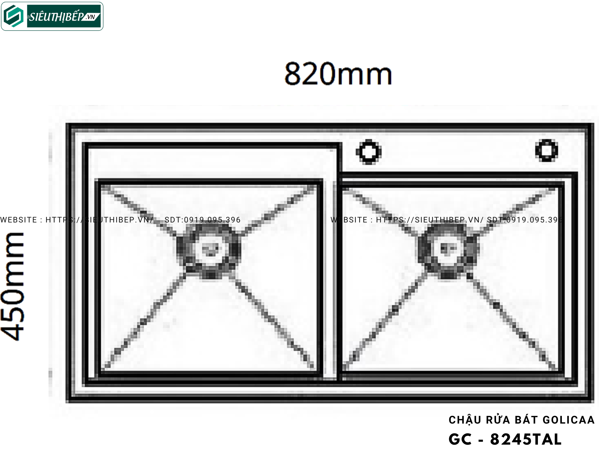Chậu rửa bát Golicaa GC - 8245TAL (Inox 304 - 2 Hộc Lệch)