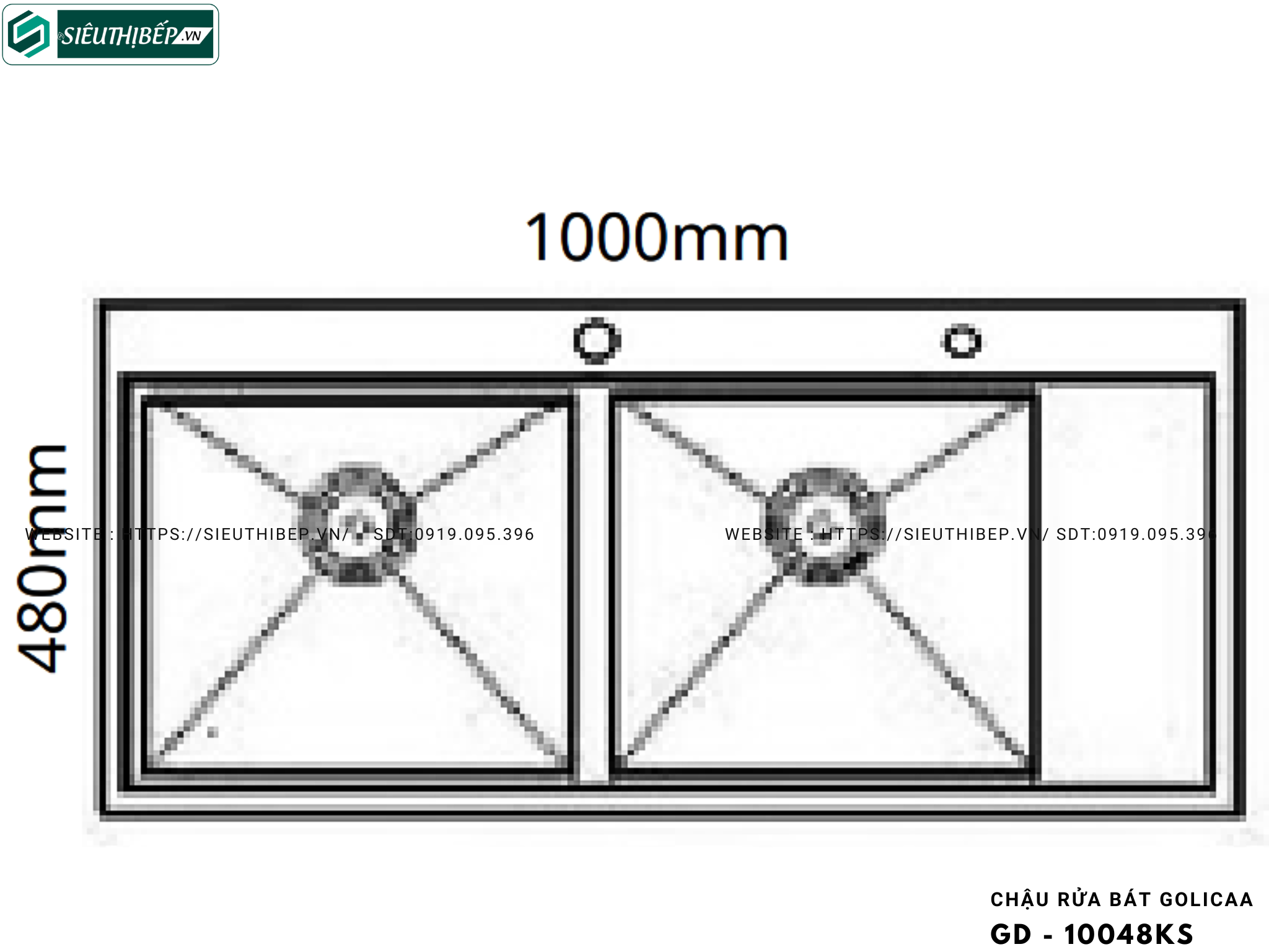 Chậu rửa bát Golicaa GD - 10048KS (Inox 304 - 2 Hộc Đều, 1 Bàn Chờ)
