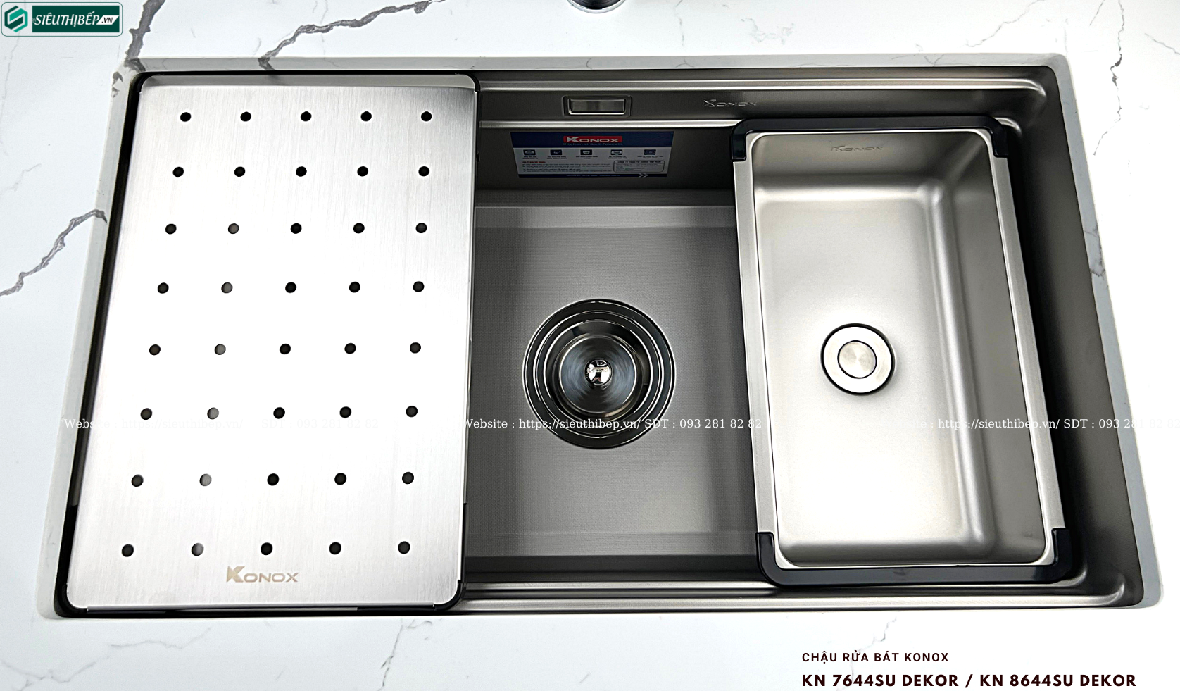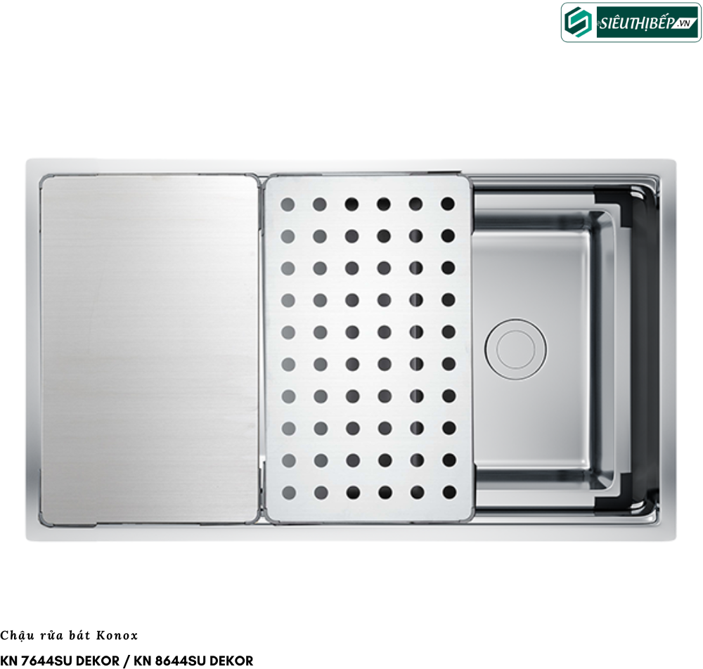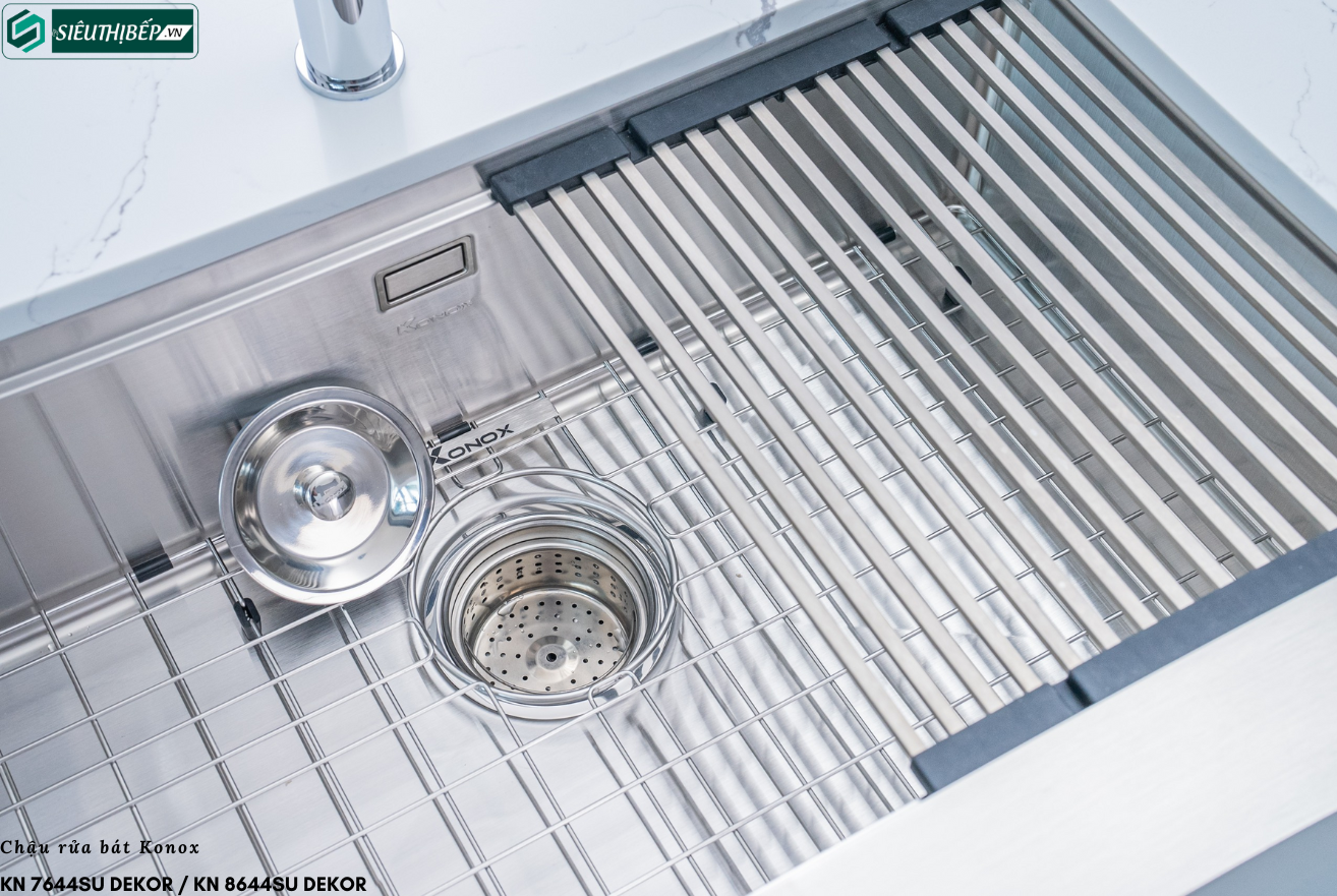 Xuất phát từ mong muốn đem lại trải nghiệm trọn vẹn nhất cho người dùng và cả sự đảm bảo sức khỏe, KONOX chọn sử dụng bát rác có nắp đậy kín, gồm 3 lớp lọc rác chống tắc, bề mặt được đánh bóng & phủ Nano Ag+ kháng khuẩn, ứng dụng công nghệ kháng khuẩn HYPERKILA-MIC an toàn cho sức khỏe, phù hợp với thói quen sử dụng của người Việt.