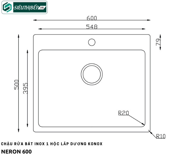 Kích thước hố | 548x395mm |