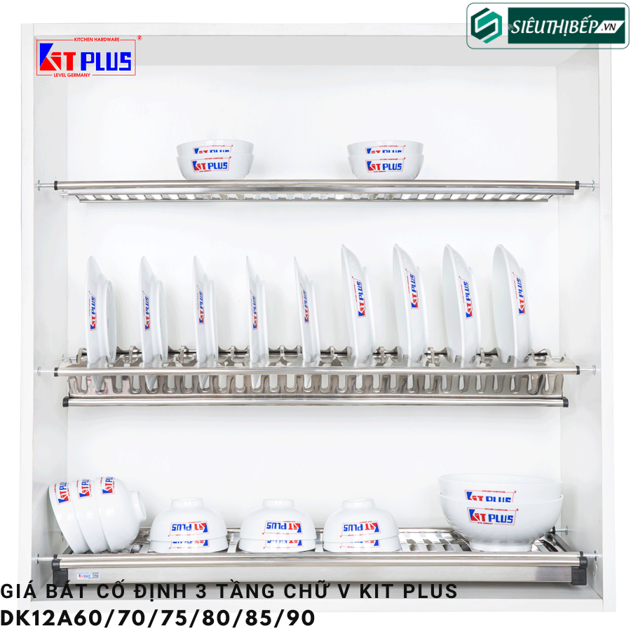 Giá bát cố định 3 tầng chữ V Kit Plus DK12A60 / DK12A70 / DK12A75 / DK12A80 / DK12A85 / DK12A90