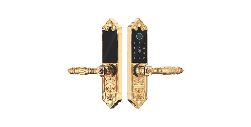 Chất liệu: Thân khóa được làm từ hợp kim kẽm cao cấp, bề mặt mạ vàng 24K, đảm bảo độ bền và khả năng chống gỉ sét theo thời gian.