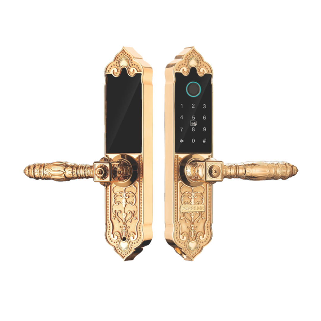 Khóa đại sảnh Kassler KL - 919 là mẫu khóa cửa thông minh mang phong cách tân cổ điển, được thiết kế đặc biệt cho cửa gỗ đại sảnh. Sản phẩm kết hợp giữa vẻ đẹp sang trọng và công nghệ hiện đại, phù hợp với nhiều không gian nội thất cao cấp.