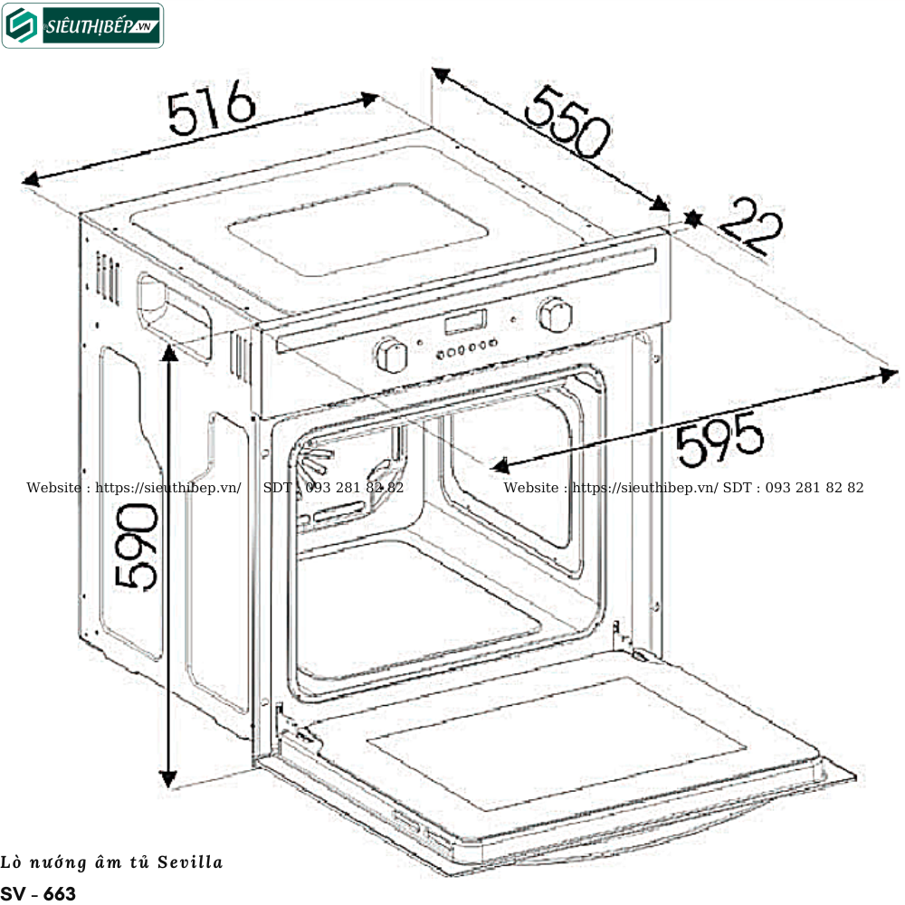 - Kích thước âm tủ: 560 x 583 x 550 mm (Rộng x Cao x Sâu)