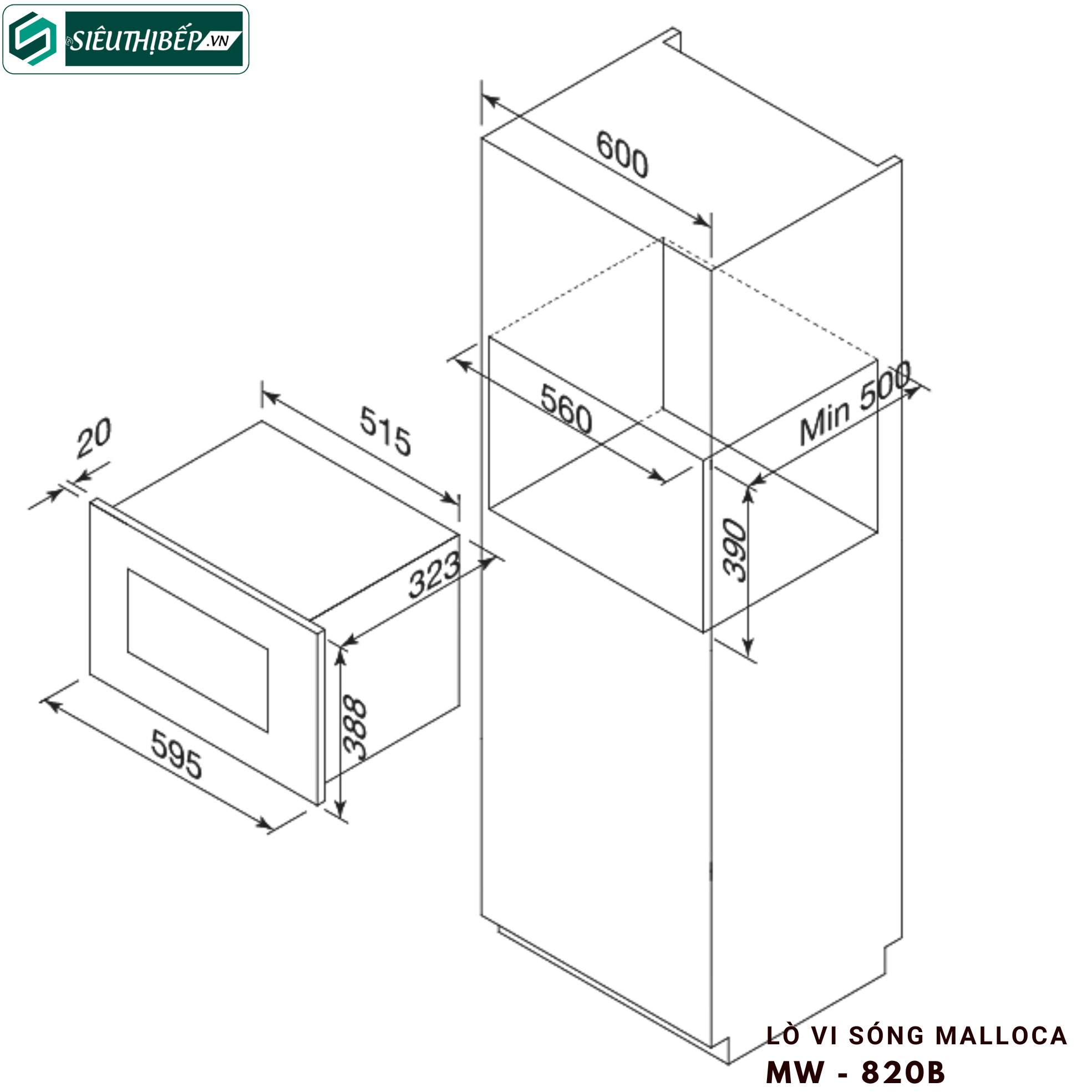 - Kích thước: W595 x D343 x H388mm