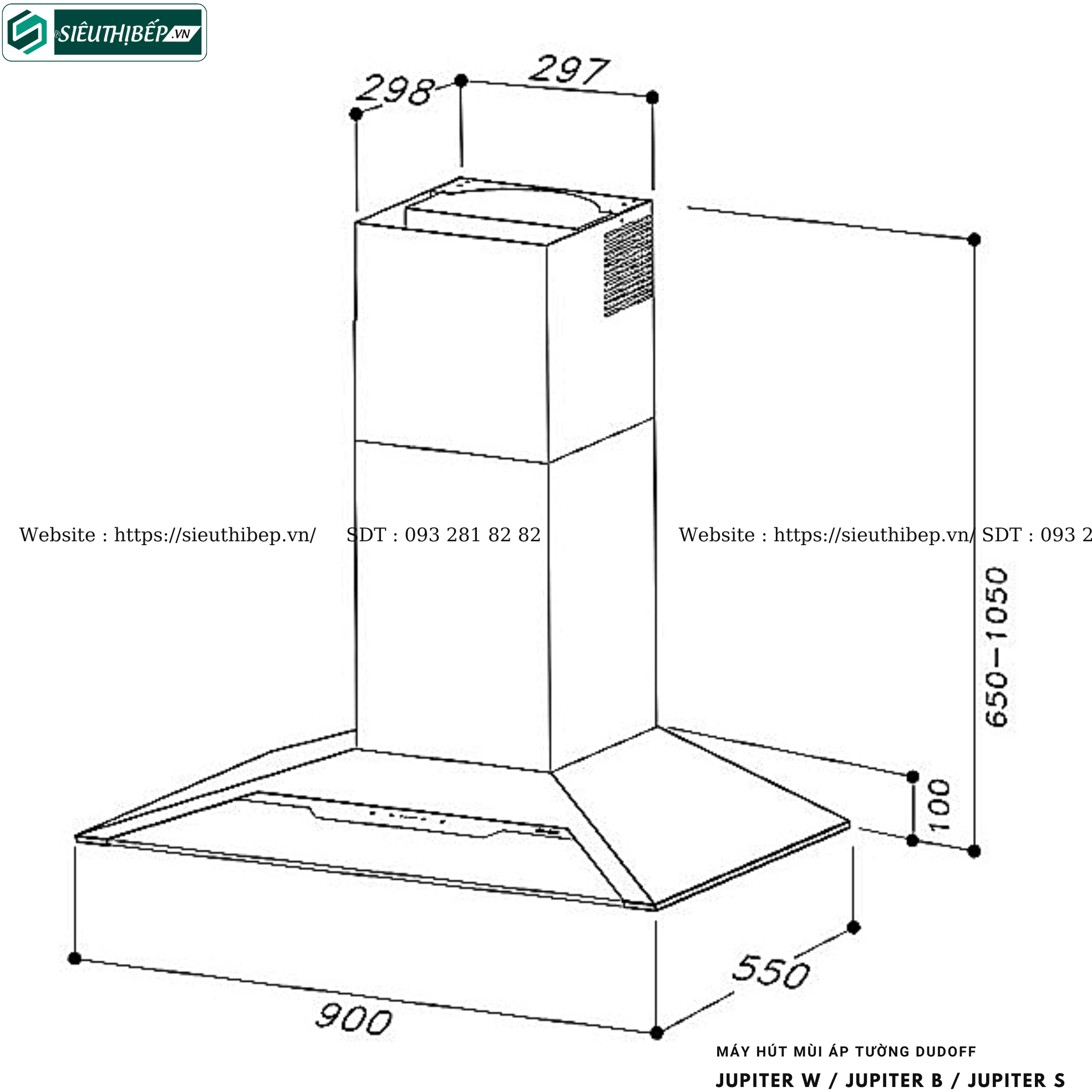 Máy hút mùi áp tường Dudoff JUPITER W / JUPITER B / JUPITER S