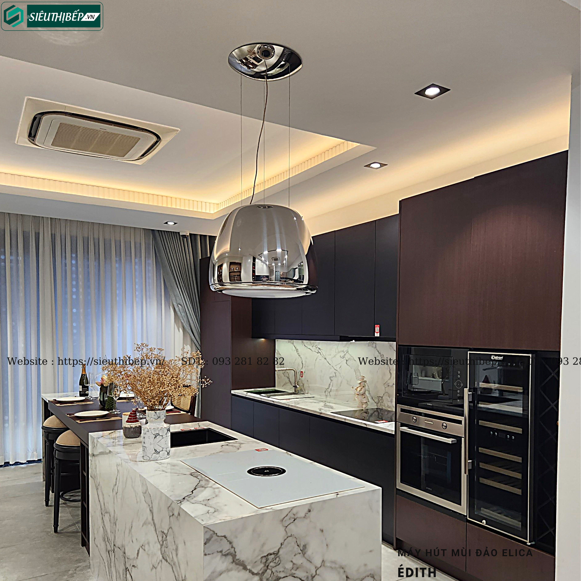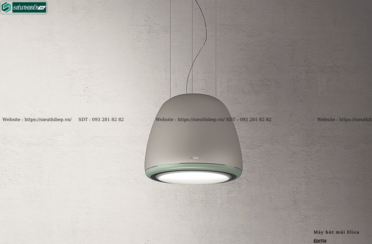 Máy hút mùi đảo đèn Édith là dòng hiệu suất cao mới nhất trong bộ sưu tập Elica Evolution. Bộ sưu tập máy hút mùi đèn chùm đầu tiên được ra mắt trên thế giới năm 2005. Édith đem đến giải pháp kiểu dáng với thân vỏ hoàn thiện sáng tạo. Édith đảm bảo không khí và chất lượng ánh sáng phù hợp cho mọi không gian. New Evolution được đặc trưng bởi một động cơ hiệu suất cao với vành hút gió và đèn LED, Édith, với hình dáng mềm mại và tròn trịa nhiều chất liệu như kim loại sơn hoặc thép đánh bóng.