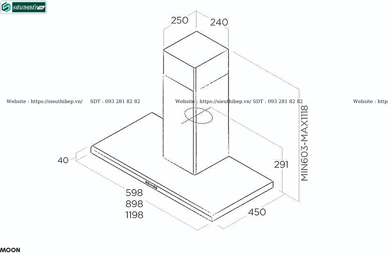Máy hút mùi áp tường MOON thanh thoát tựa mặt trăng. Thân máy inox sang trọng, dễ vệ sinh. Công suất hút và khử mùi cực cao với đa chế độ và đèn chiếu sáng