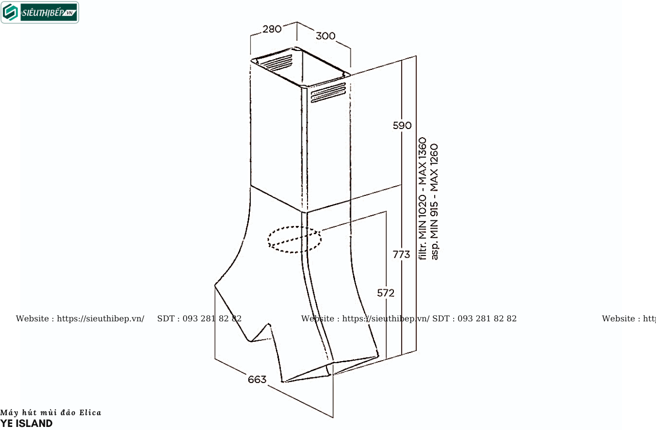 Máy hút mùi đảo Elica YE ISLAND