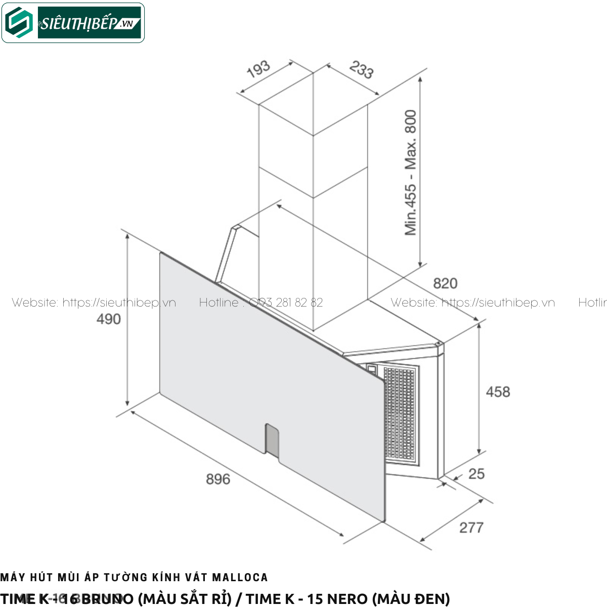 Máy hút mùi áp tường kính vát Malloca TIME K - 16 BRUNO (Màu sắt rỉ) / TIME K - 15 NERO (Màu đen)