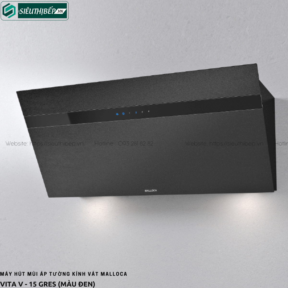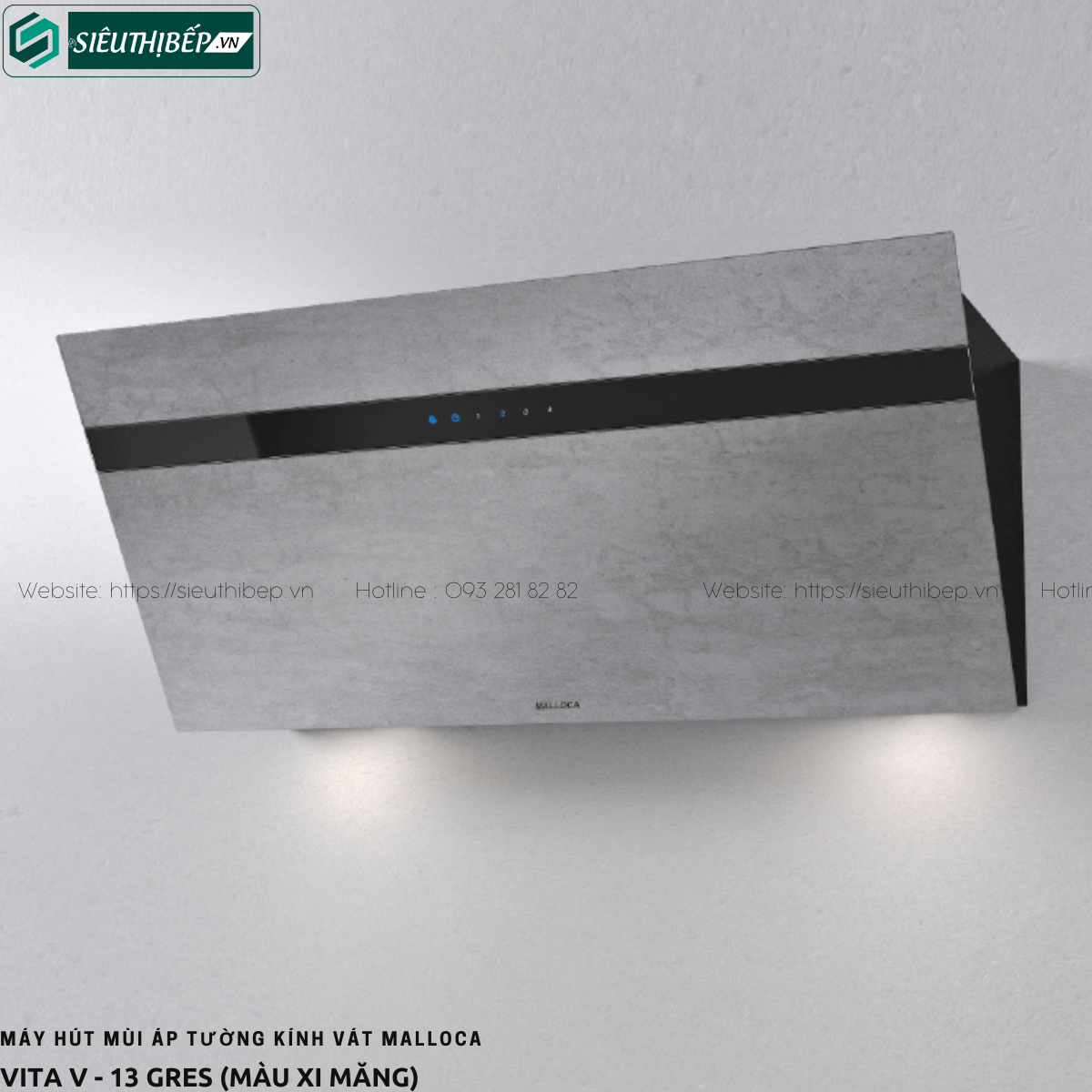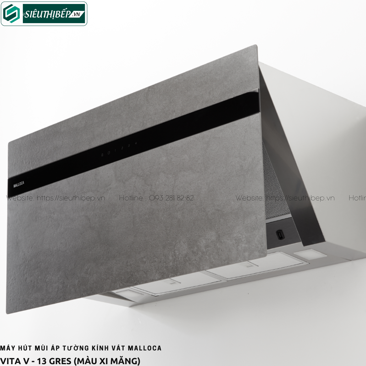 Máy hút mùi áp tường kính vát Malloca VITA V - 15 GRES (Màu đen) / VITA V - 13 GRES (Màu xi măng)