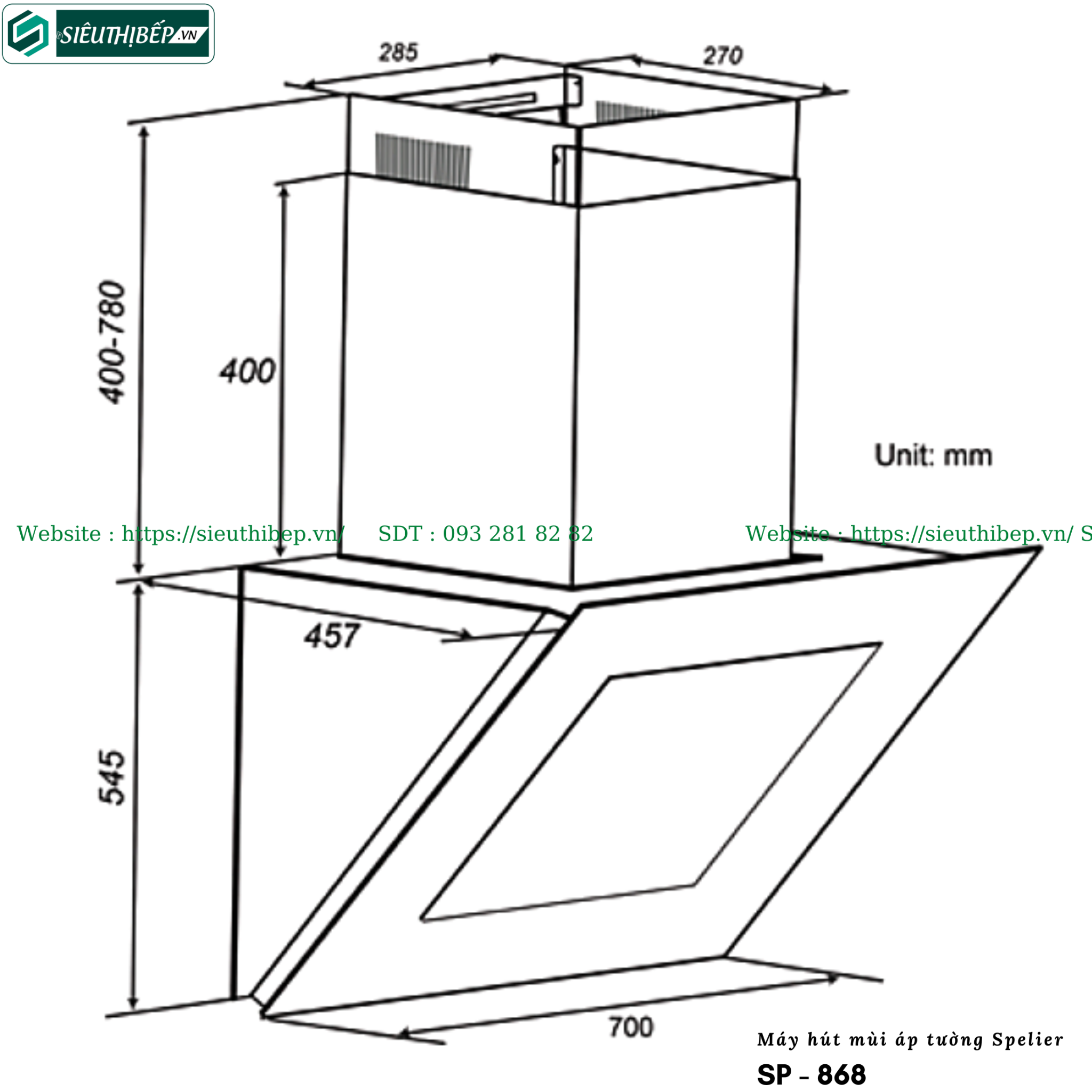 Máy hút mùi áp tường Spelier SP - 868