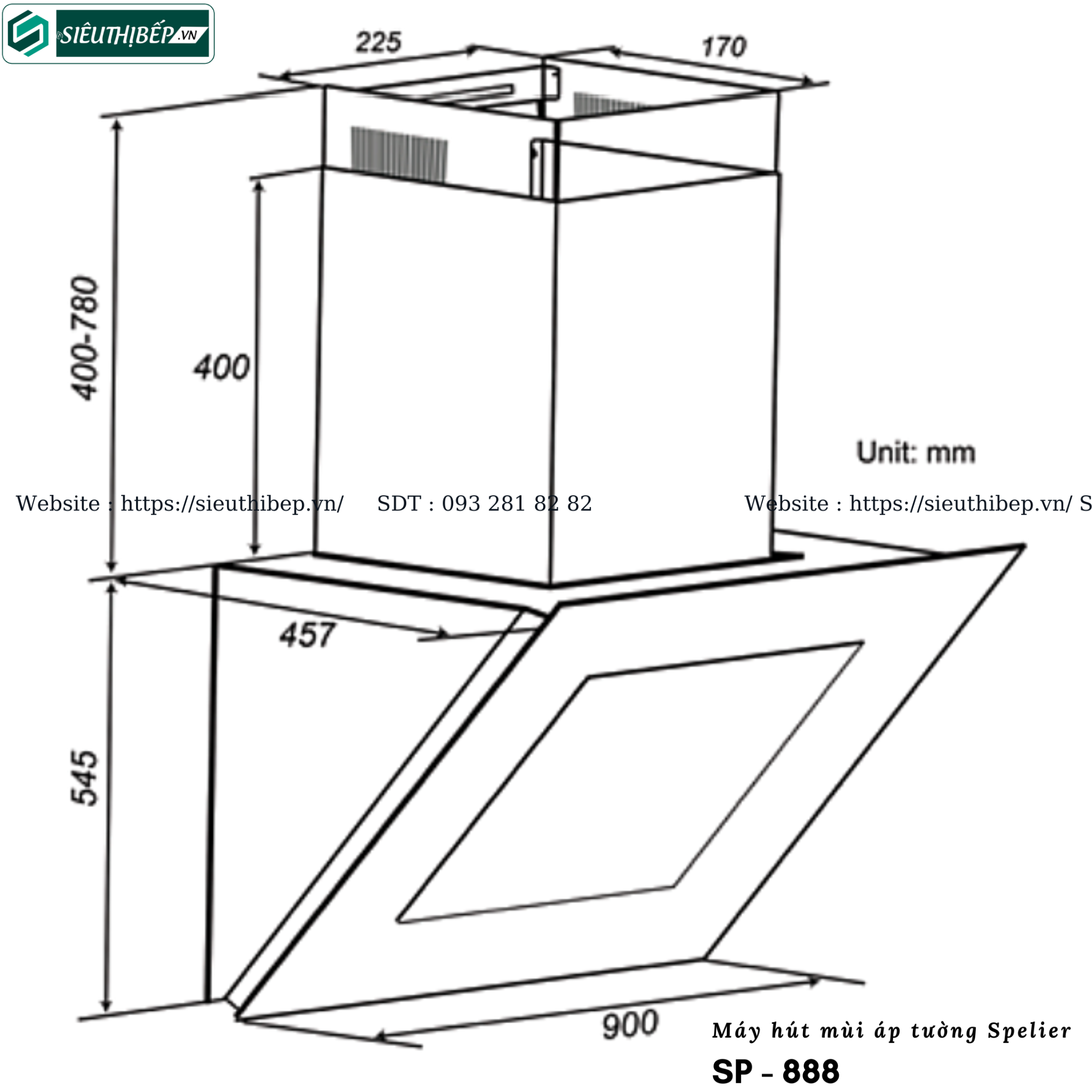 Máy hút mùi áp tường Spelier SP - 888