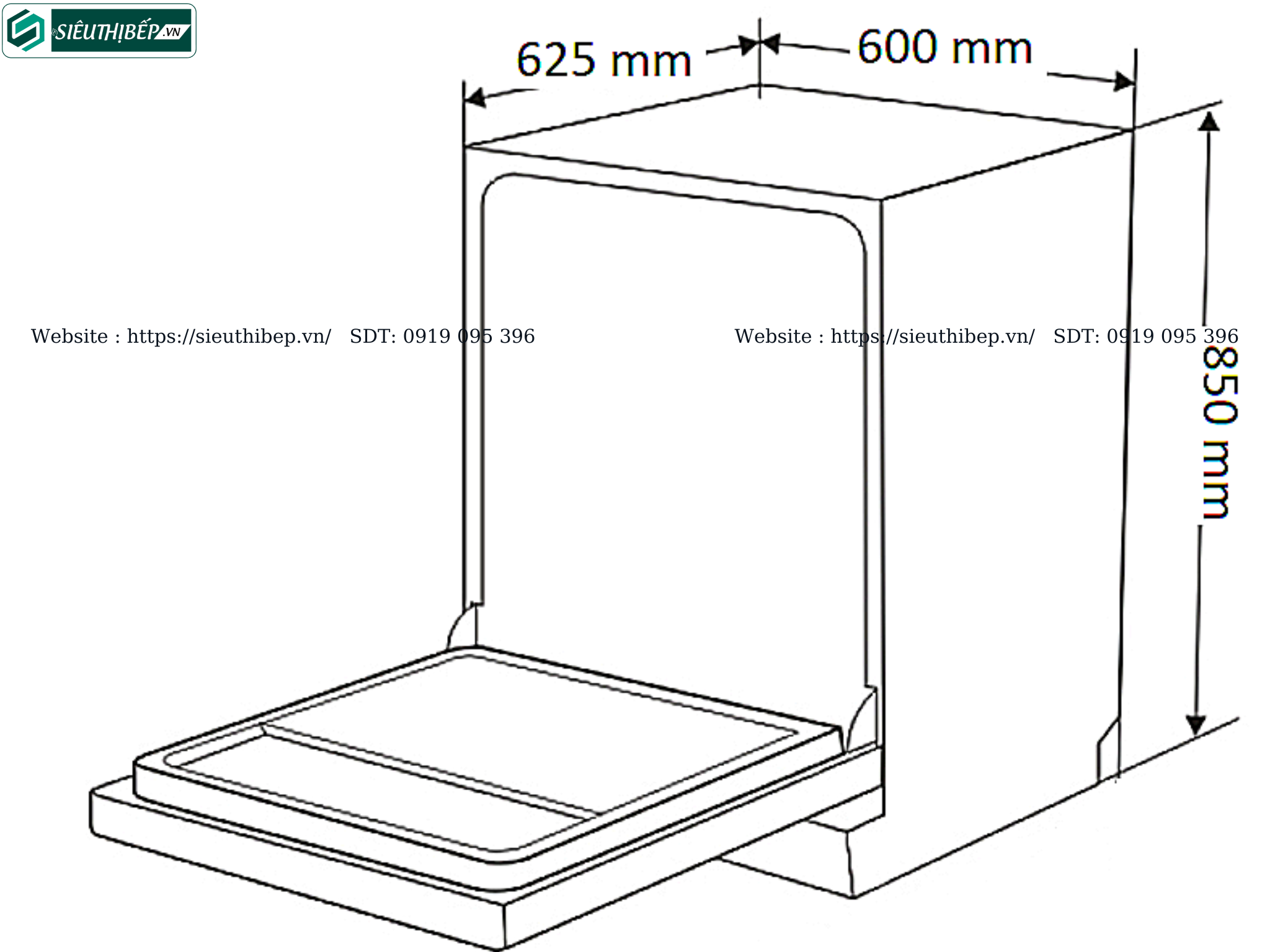 Kích thước sản phẩm | 850 x 600 x 625 mm |