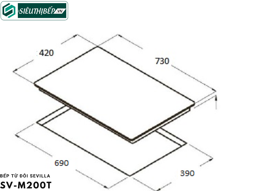 Kích thước | - Kích thước mặt kính : 730 x 420 mm - Kích thước khoét đá : 690 x 390 mm |