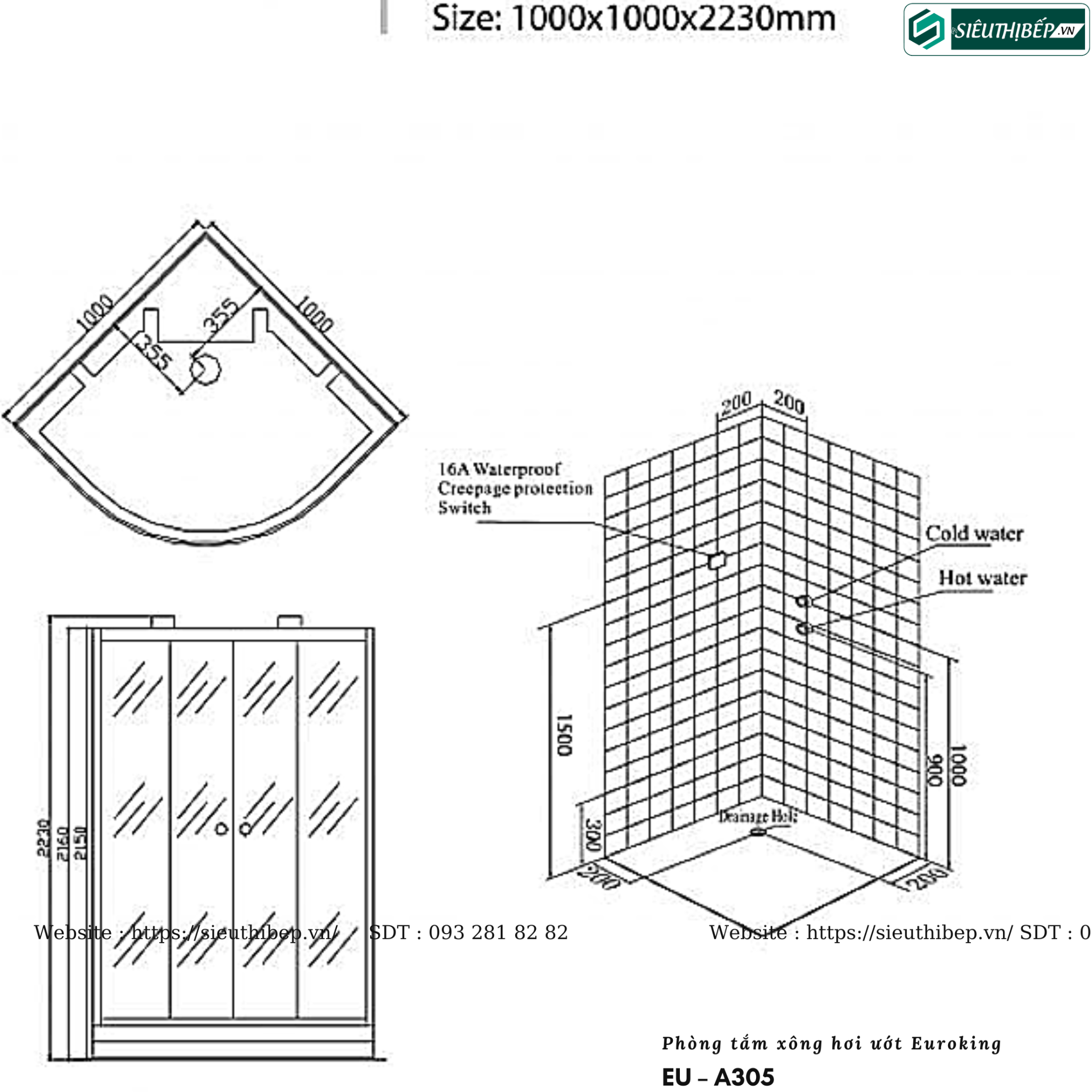 | Kích thước | 1000*1000*2230 mm |