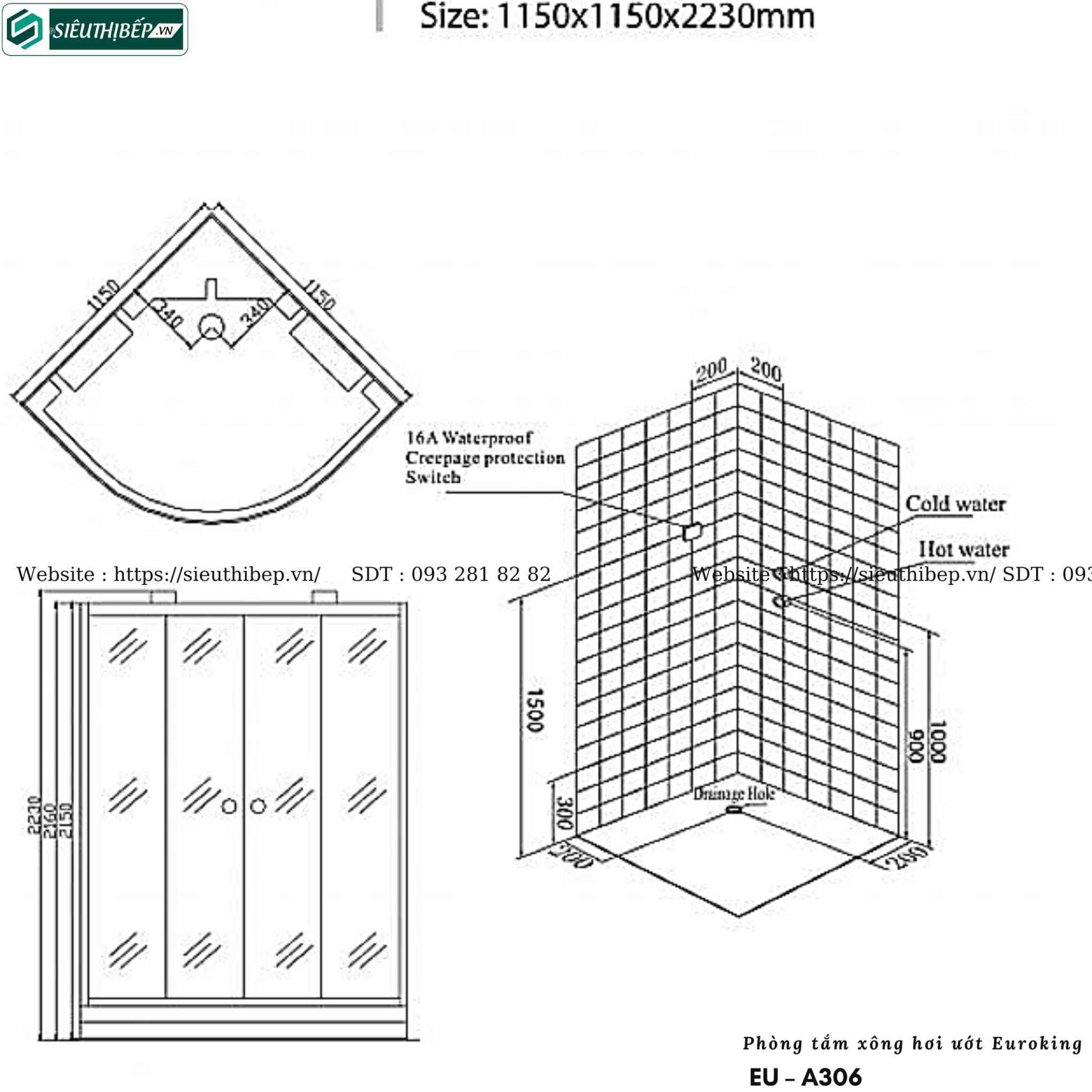 | Kích thước | 1150*1150*2230 mm |