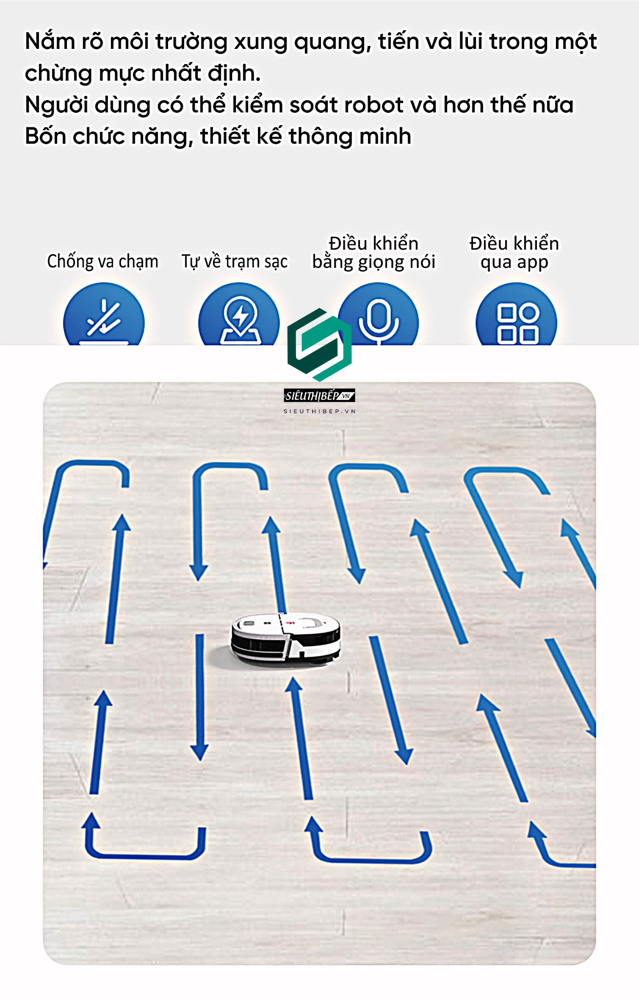 - Chế độ làm sạch 2 tốc độ: Tùy theo mức độ bẩn khác nhau trên sàn nhà, có thể lựa chọn giữa 2 chế độ làm sạch