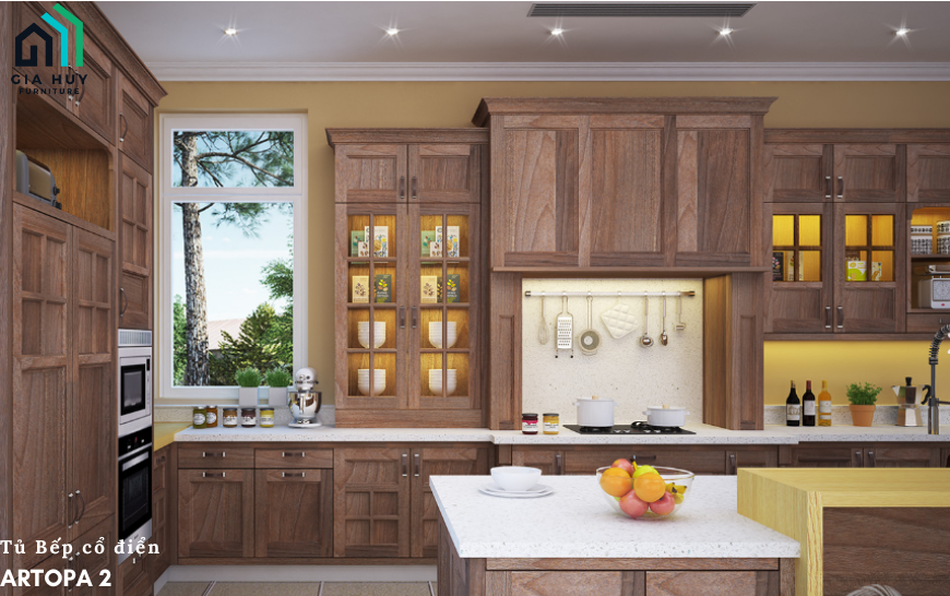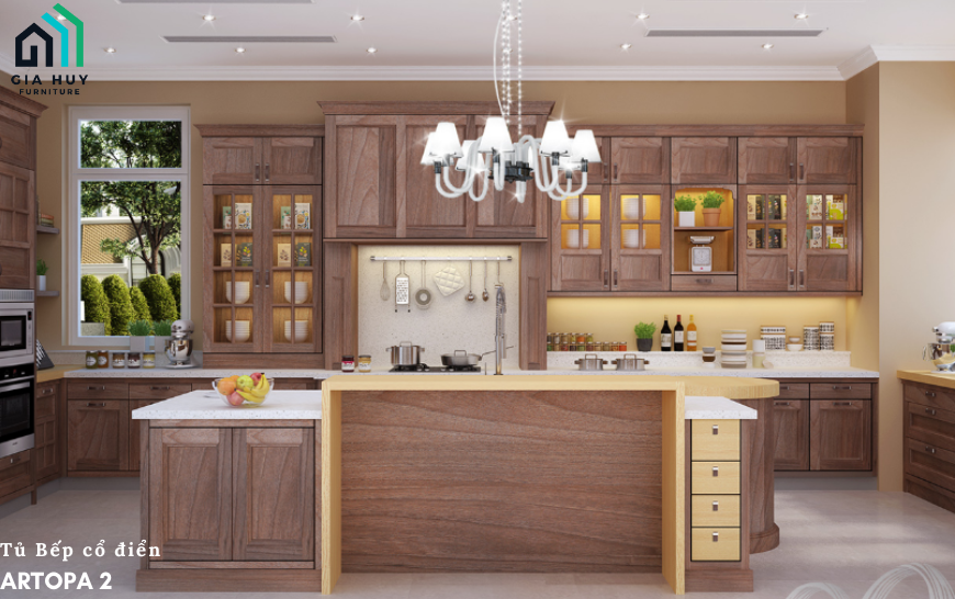 Tủ bếp cổ điển ARTOPA 2 (Gỗ walnut + MDF veneer walnut)