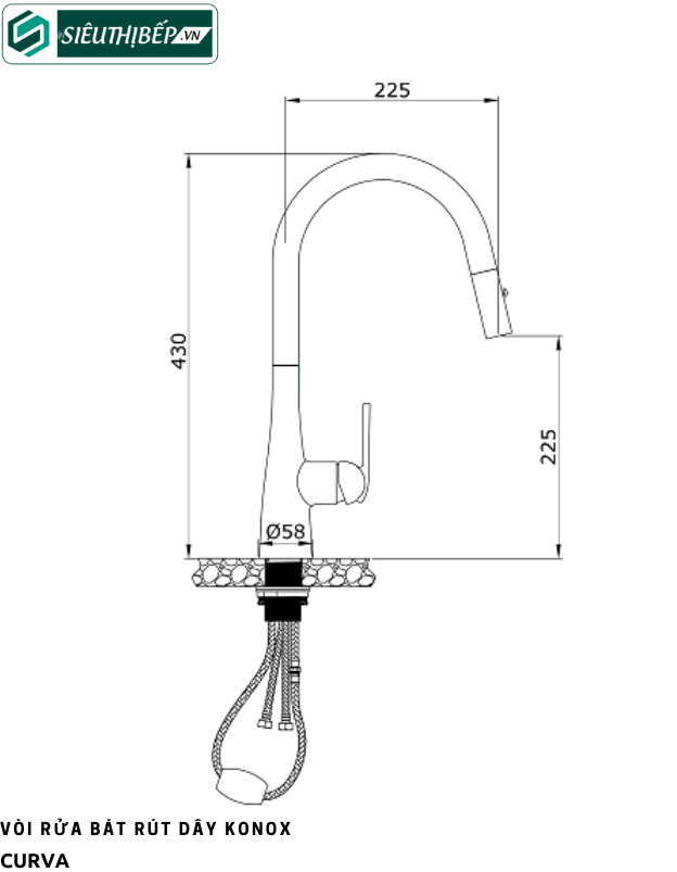 Vòi rửa bát rút dây Konox Curva